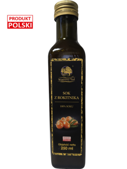 Składniki: Sok tłoczony z rokitnika 100% Produkt pasteryzowany.